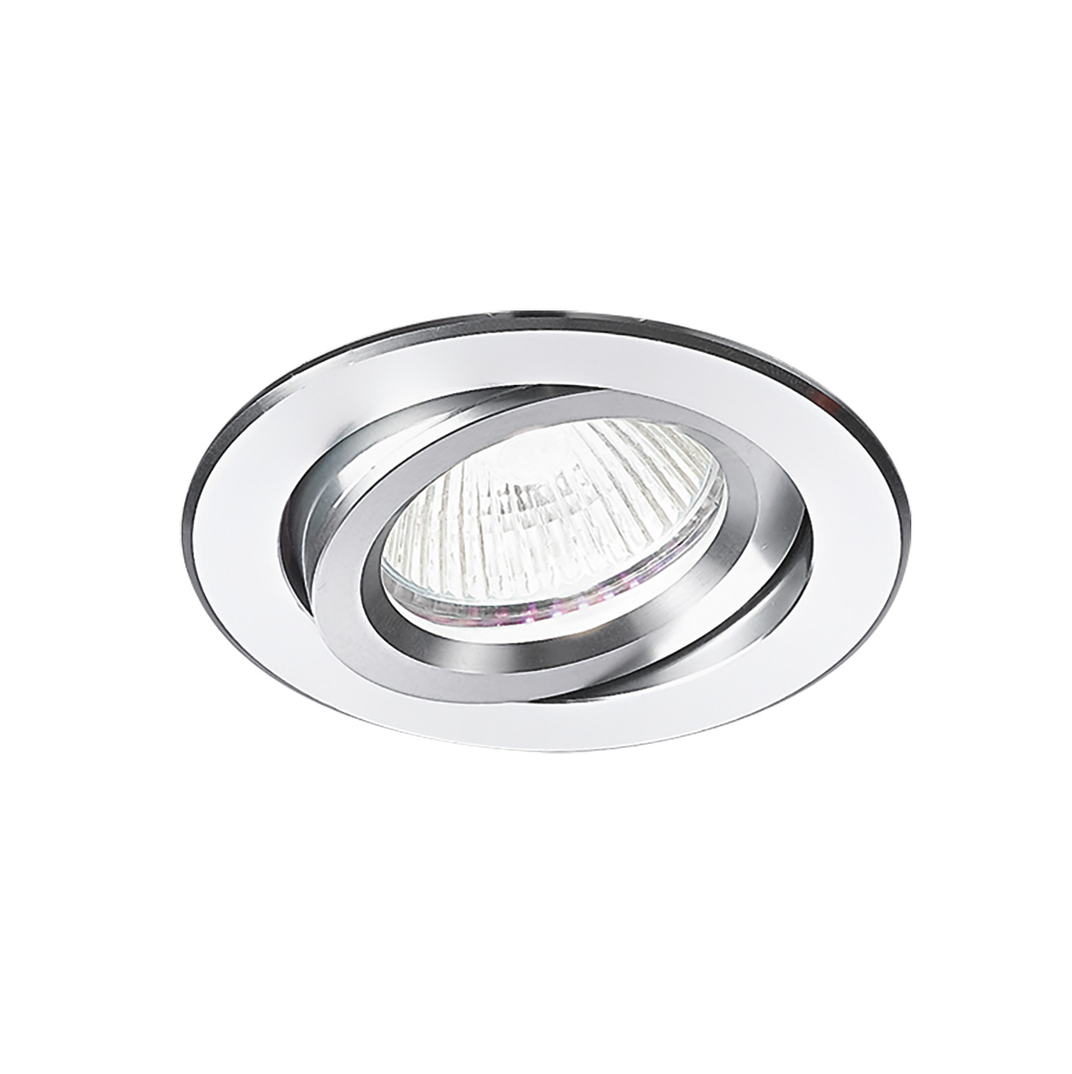 Faretto ad incasso tondo 12V, orientabile su un asse di ?25?, con attacco GU5,3 che consente di montare lampadina LED, alogena o a risparmio energetico. Struttura in alluminio tornito. Necessita di alimentatore da installare in remoto. Cassaforma per installazione in muratura da ordinare come accessorio. Compatibile con modulo COB LED.