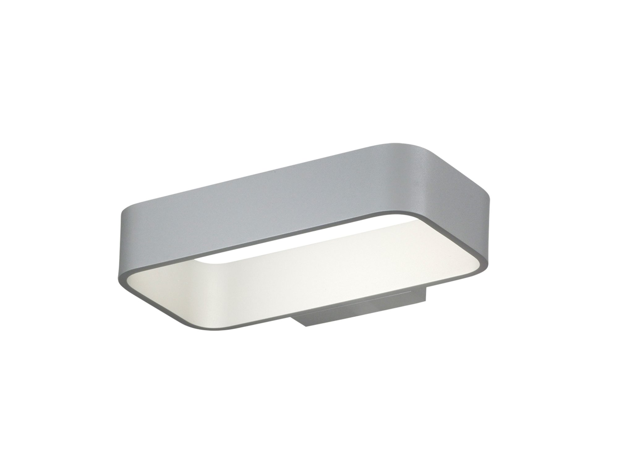 Lampada da parete e da tavolo a LED (3000K) realizzata in pressofusione di alluminio verniciato bianco o grigio. Alimentatore integrato. Versione da tavolo con accensione (on/off) touch
