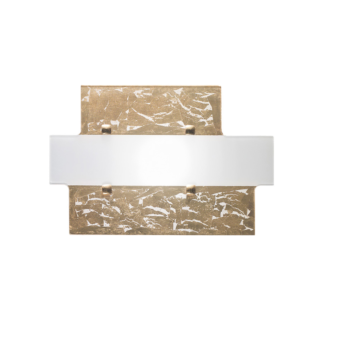 Lampada a soffitto e da parete in vetro extra chiaro temperato lucido, dalla particolare forma geometrica. Struttura in metallo verniciato bianco. Disponibile in tre dimensioni e relative potenze e in finiture: bianco satinato, foglia oro e foglia argento. Cablata con attacco E27 che consente di montare lampadina LED.