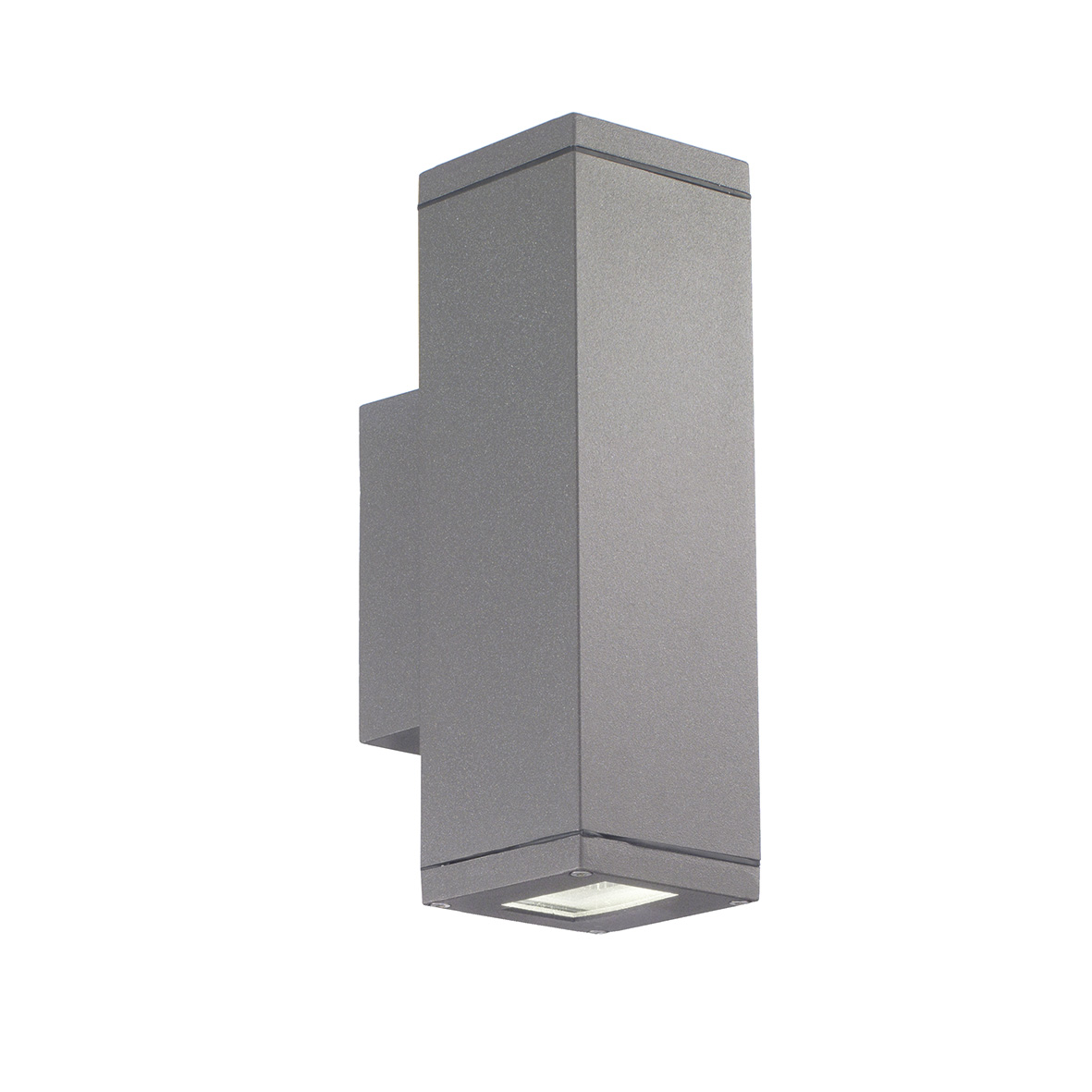 Apparecchio a parete per esterno, biemissione, proposto a LED (220/240V) o con attacco GU10, che consente di montare lampadina LED, alogena o a risparmio energetico. Struttura in pressofusione di alluminio e diffusore in vetro temperato. Disponibile in tre finiture (antracite, grigio e marrone) e nella versione a LED in due temperature colore (3000K e 4000K). Disponibili giunti di connessione lineare che aumentano il grado di protezione a IP68 e giunti di connessione anticondensa.