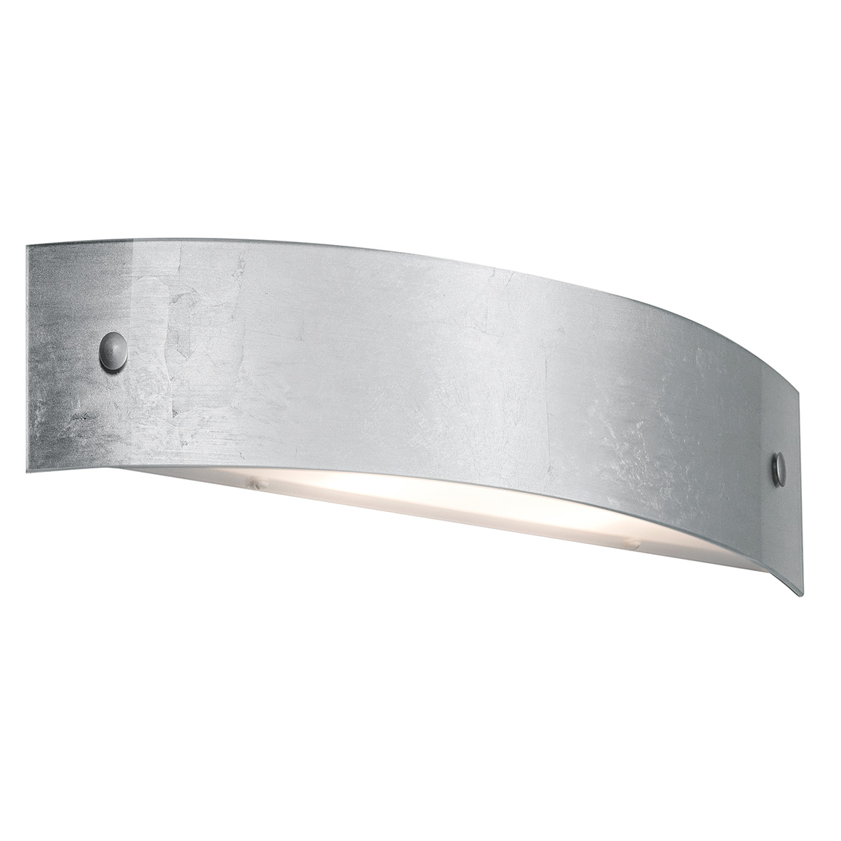 Lampada da parete in vetro, proposta in versione bianca satinata, foglia oro e foglia argento. Disponibile in diverse misure e relative potenze, con LED integrato (2700K) o con attacco E27 che consente di montare lampadina LED.