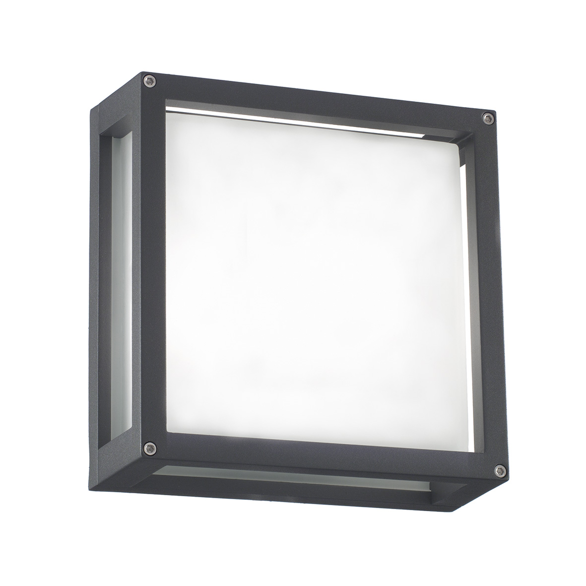 Apparecchio a parete e plafone da esterno, proposto nella versione a LED, corredata di sensore a microonde di presenza e crepuscolare, e con attacco E27, che consente di montare lampadina LED, alogena o a risparmio energetico. Struttura in pressofusione di alluminio verniciato con polveri poliestere a elevata resistenza ai raggi ultravioletti e alla corrosione, diffusore in vetro satinato. Disponibile in tre finiture (antracite, grigio e marrone), nella versione a LED in due temperature colore (3000K e 4000K) e con alimentatore LED integrato. Disponibili giunti di connessione lineare che aumentano il grado di protezione a IP68 e giunti di connessione anticondensa.