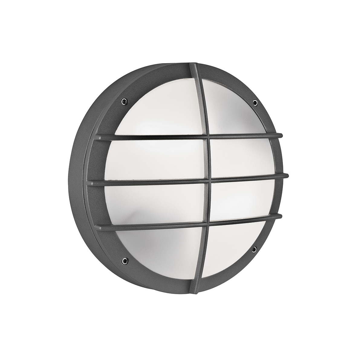 Apparecchio a parete e plafone per esterno, proposto nella versione a LED, corredata di sensore a microonde di presenza e crepuscolare, e con attacco E27 che consente di montare lampadina LED, alogena o a risparmio energetico. Struttura in pressofusione di alluminio verniciato con polveri poliestere a elevata resistenza ai raggi ultravioletti e alla corrosione, diffusore in policarbonato. Disponibile in tre finiture (antracite, grigio e marrone), nella versione LED in due temperature colore (3000K e 4000K) e con alimentatore integrato, nella versione con palpebra e con griglia. Disponibili giunti di connessione lineare che aumentano il grado di protezione a IP68 e giunti di connessione anticondensa.