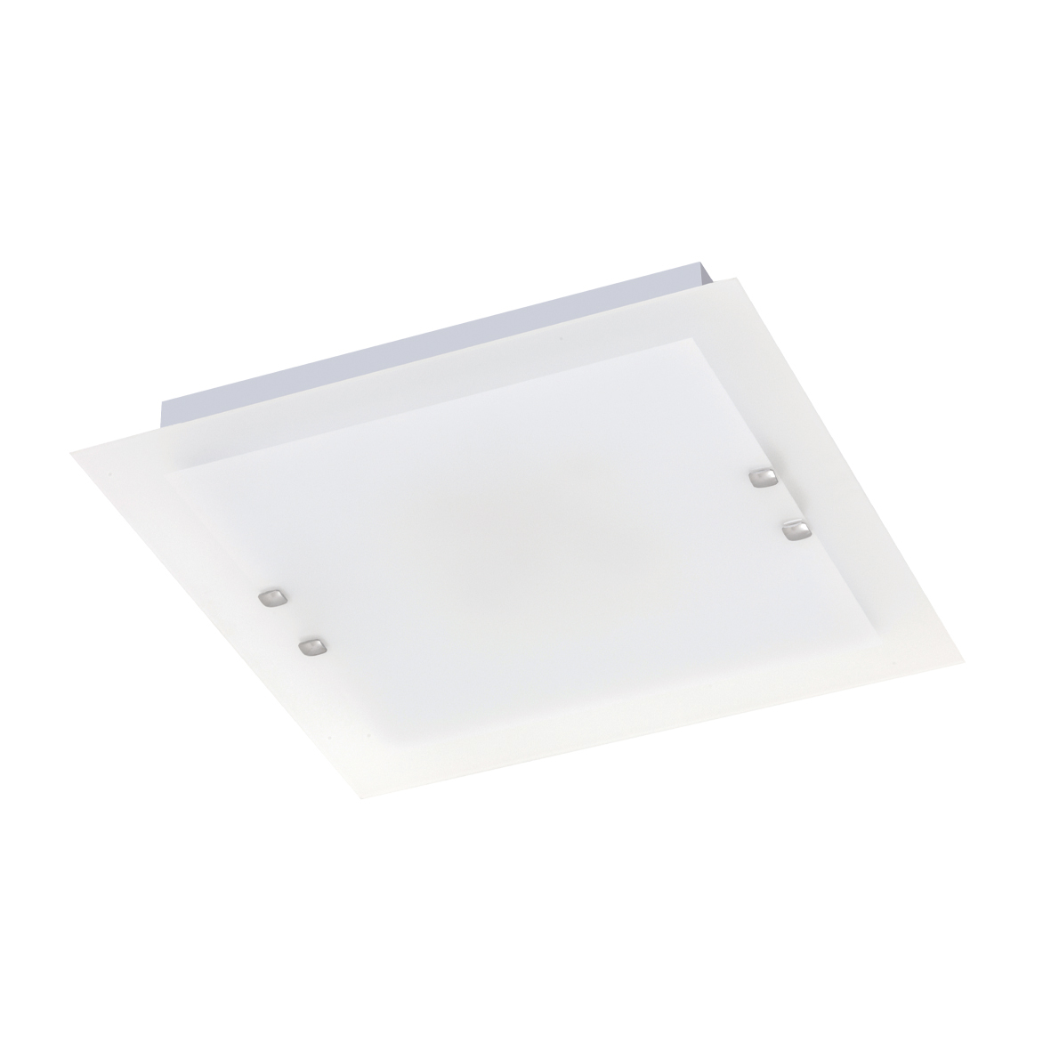 Lampada a soffitto e da parete in vetro extrachiaro lucido temperato con bordo colorato di bianco o grigio e particolari cromati. Cablata con attacco E27 che consente di montare lampadina LED.