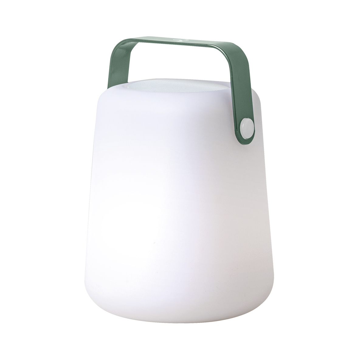Lampada da tavolo a LED RGB + warm white (3000K), portatile, ricaricabile e con emissione del suono, adatta per utilizzo indoor e outdoor (grado di protezione IP44). Corpo diffondente in polietilene bianco opaco e maniglia intercambiabile in metallo verniciato (da ordinare separatamente), disponibile in quattro finiture: rosso, giallo, blu e verde. Accensione on/off con interruttore touch, dimmerabile tramite telecomando. Ricarica tramite USB, durata della batteria 10 ore. Dotata di altoparlante Bluetooth collegabile tramite smartphone e tablet. LED a 9 colori, con possibilit? di luce fissa, alternata (a due velocit? regolabili dall’utente) e con variazione colore RGB. Possibilit? di selezione del colore del LED, variazione dell’intensit? della luce e controllo del volume grazie al telecomando multifunzione in dotazione.
