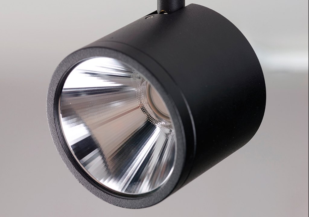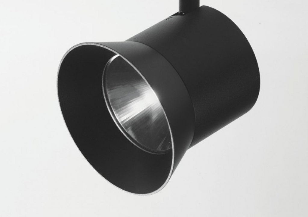 Proiettore su asta orientabile con LED COB a luce diretta. Corpo in alluminio.