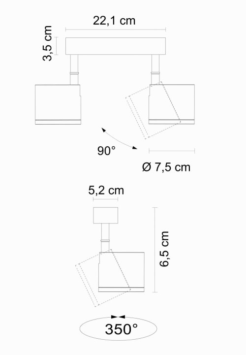 lampade:/W – LED 2×8,9W 2706lm CRI>80 4000K /WW – LED 2×8,9W 2606m CRI>80 3000K /XW – LED 2×8,9W 2488lm CRI>80 2700K