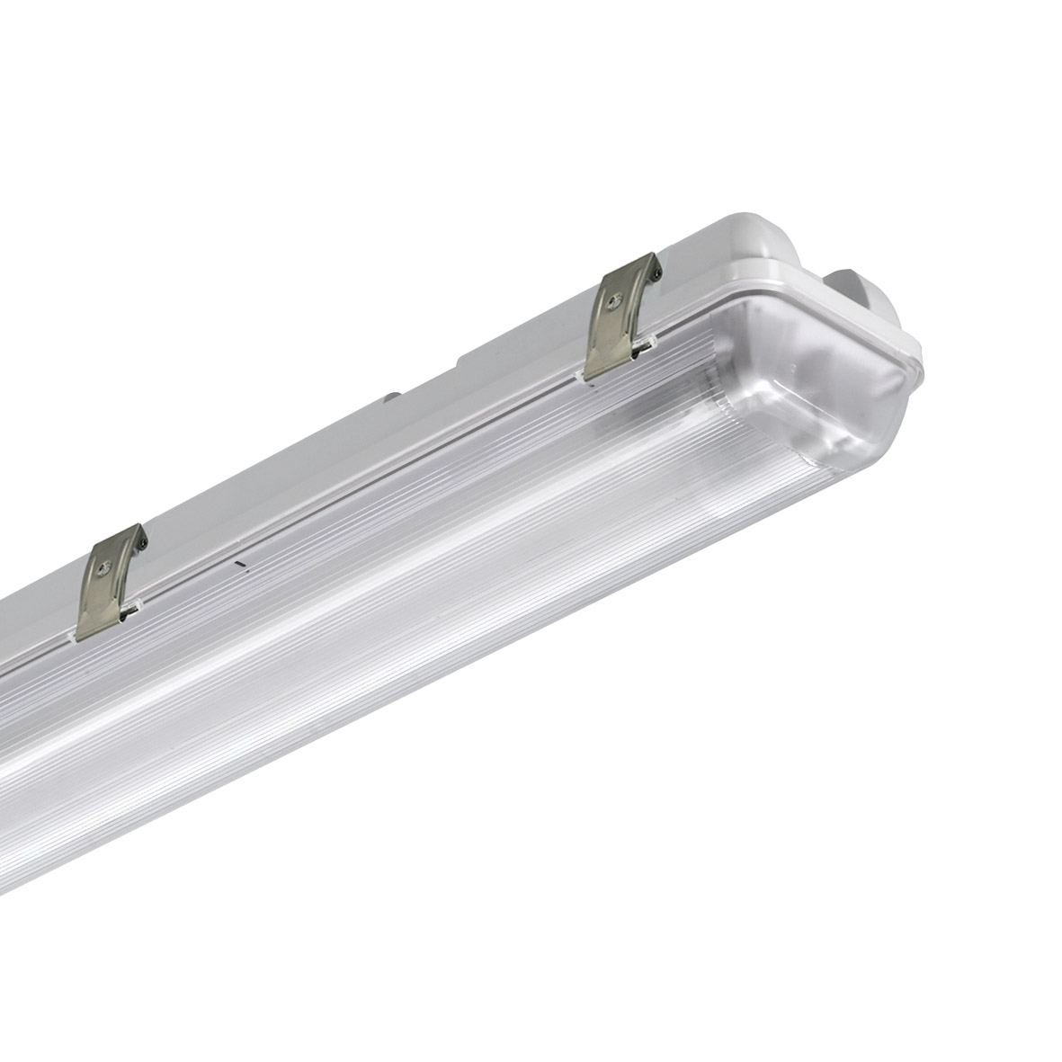 Apparecchio stagno LED o con attacco G13 per soli tubi LED con alimentazione diretta 220/240V. Monolampada o bilampada, applicabile a parete o soffitto. Struttura in ABS grigio e diffusore in policarbonato, opale per la versione con LED integrato, trasparente e rigato internamente per la versione con attacco G13 ganci in acciaio inox. Protezione IP65 che consente l’installazione in ambienti esterni, umidi, polverosi e/o corrosivi. Alimentatore integrato. La versione con attacco G13 ? predisposta con il cablaggio universale (vedere schema di cablaggio), la versione con LED integrato ? disponibile in una gradazione (4000K). Disponibili giunti di connessione lineare che aumentano il grado di protezione a IP68 e giunti di connessione anticondensa.