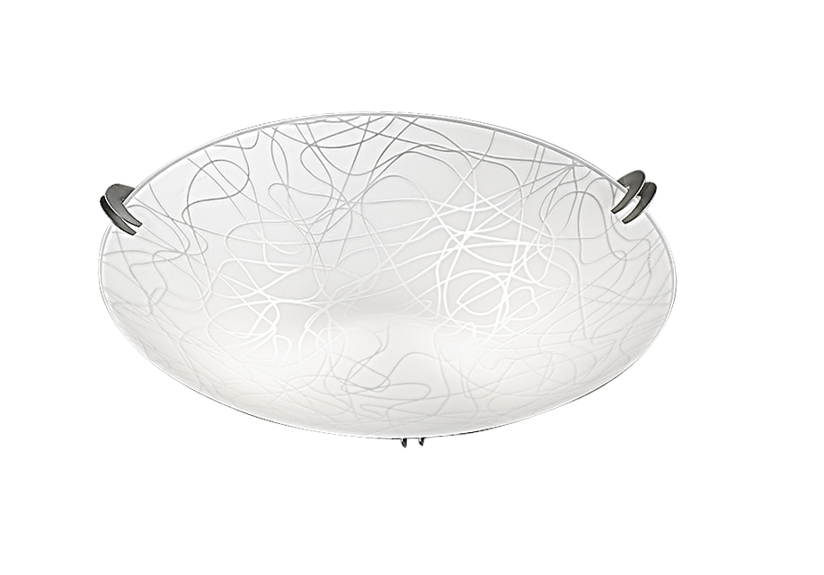 Lampada da parete e da soffitto in vetro opale serigrafato con decori cristallo, particolari cromati. Disponibile in diverse misure e relative potenze. Cablata con attacco standard che consente di montare lampadina LED.