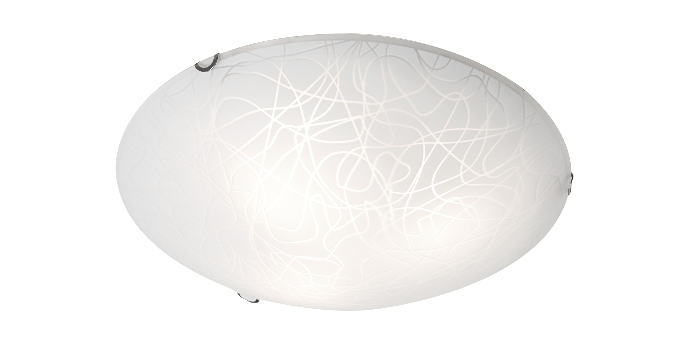 Lampada da parete e da soffitto in vetro opale serigrafato con decori cristallo, particolari cromati. Disponibile in diverse misure e relative potenze. Cablata con attacco standard che consente di montare lampadina LED.