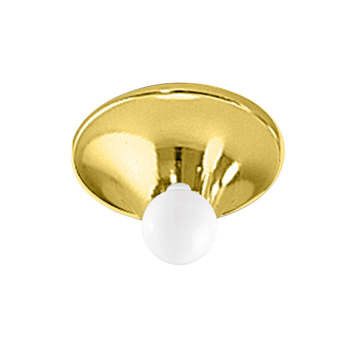 Lampada da soffitto e a parete in alluminio con attacco E27 con lampadina a vista che consente all’utente di montare una lampadina a sua scelta, personalizzando ulteriormente il prodotto. Disponibile in cinque finiture (bianco, cromo, grigio, nero e oro lucido) e tre misure.