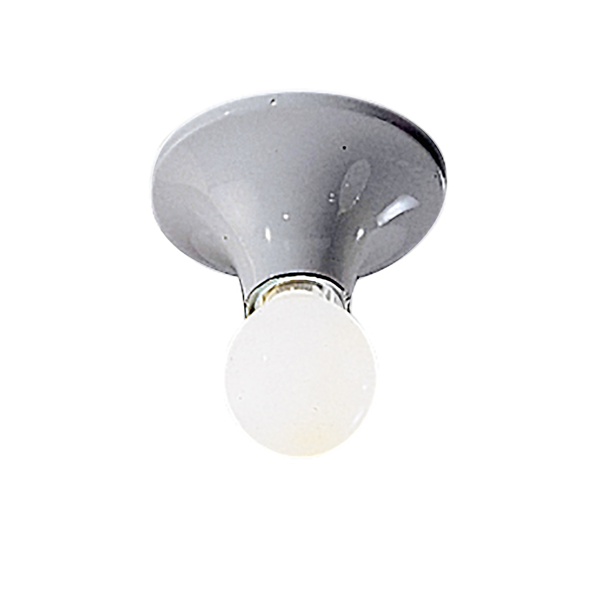 Lampada da soffitto e a parete in alluminio con attacco E27 con lampadina a vista che consente all’utente di montare una lampadina a sua scelta, personalizzando ulteriormente il prodotto. Disponibile in cinque finiture (bianco, cromo, grigio, nero e oro lucido) e tre misure.