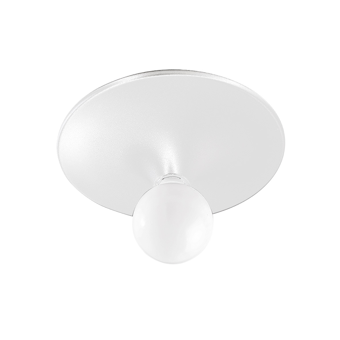 Lampada da soffitto e a parete in alluminio con attacco E27 con lampadina a vista che consente all’utente di montare una lampadina a sua scelta, personalizzando ulteriormente il prodotto. Disponibile in cinque finiture (bianco, cromo, grigio, nero e oro lucido) e tre misure.