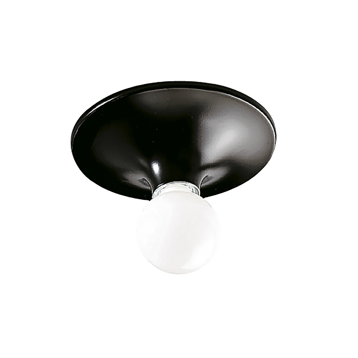Lampada da soffitto e a parete in alluminio con attacco E27 con lampadina a vista che consente all’utente di montare una lampadina a sua scelta, personalizzando ulteriormente il prodotto. Disponibile in cinque finiture (bianco, cromo, grigio, nero e oro lucido) e tre misure.