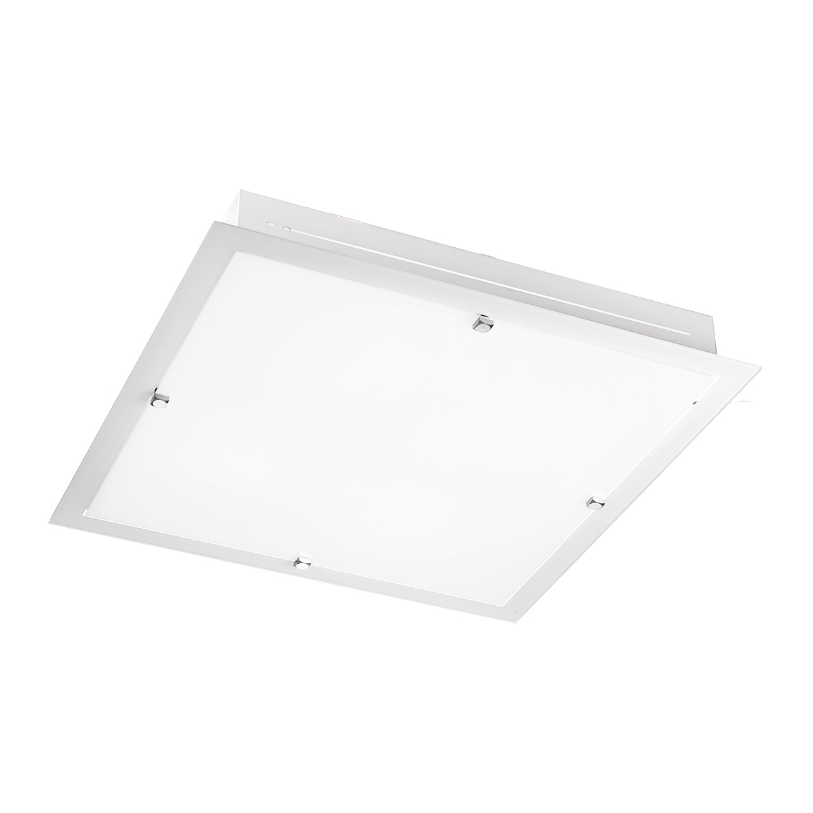 Lampada a soffitto e da parete in vetro bianco temperato con filo cristallo. Struttura metallica bianca opaca con tagli laterali per un particolare effetto di luce sulla parete di installazione, viti e particolari cromati. Proposta in diverse dimensioni e relative potenze, nella versione a LED (2700K) e con attacco tradizionale (E27) che consente di montare lampadina LED.