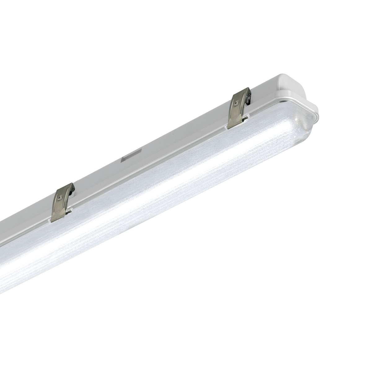 Apparecchio stagno LED o con attacco G13 per soli tubi LED con alimentazione diretta 220/240V. Monolampada o bilampada, applicabile a parete o soffitto. Struttura in ABS grigio e diffusore in policarbonato, opale per la versione con LED integrato, trasparente e rigato internamente per la versione con attacco G13 ganci in acciaio inox. Protezione IP65 che consente l’installazione in ambienti esterni, umidi, polverosi e/o corrosivi. Alimentatore integrato. La versione con attacco G13 ? predisposta con il cablaggio universale (vedere schema di cablaggio), la versione con LED integrato ? disponibile in una gradazione (4000K). Disponibili giunti di connessione lineare che aumentano il grado di protezione a IP68 e giunti di connessione anticondensa.