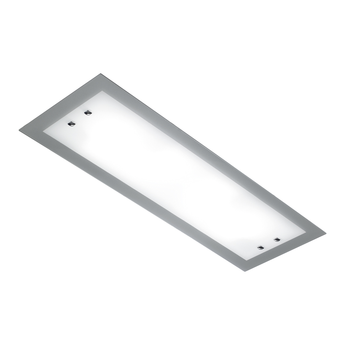 Lampada a soffitto e da parete in vetro extrachiaro lucido temperato con bordo colorato di bianco o grigio e particolari cromati. Cablata con attacco E27 che consente di montare lampadina LED.