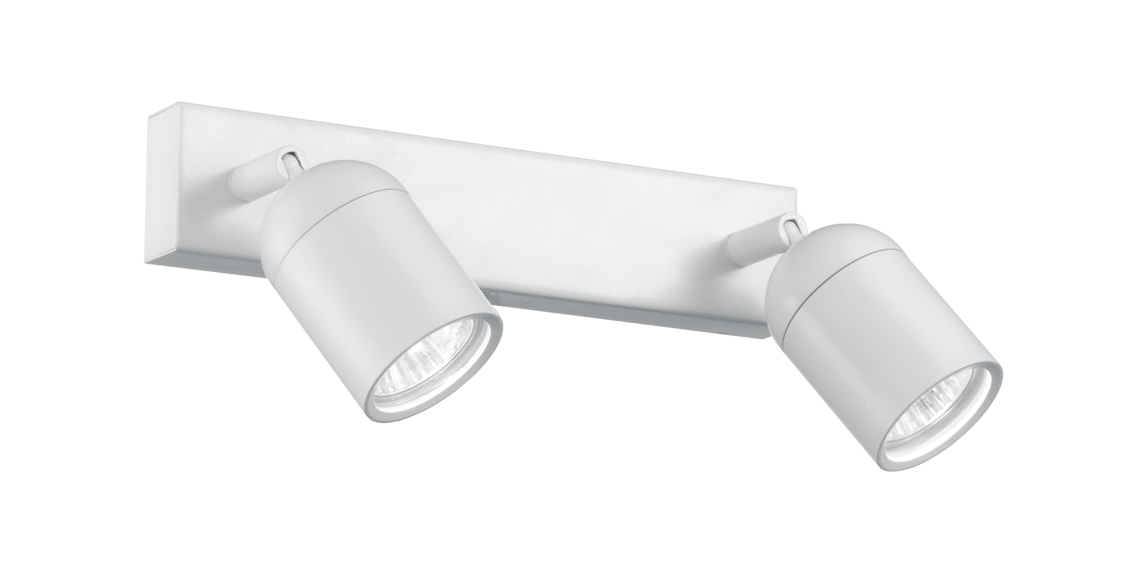 Lampada da parete e a soffitto in metallo verniciato bianco, con spot orientabili. Vetro in cristallo temperato a copertura della fonte luminosa, attacco GU10 che consente di montare lampadina LED. Prodotto proposto nella versione singola, da due o da tre elementi, ideale per l’installazione in bagni (IP44) o luoghi di passaggio.
