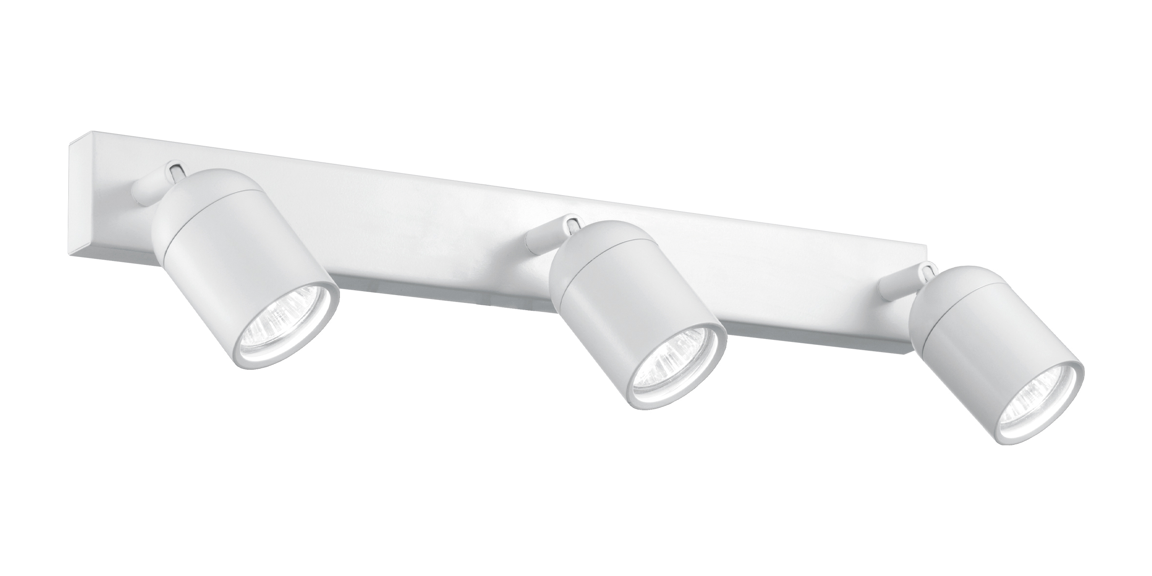 Lampada da parete e a soffitto in metallo verniciato bianco, con spot orientabili. Vetro in cristallo temperato a copertura della fonte luminosa, attacco GU10 che consente di montare lampadina LED. Prodotto proposto nella versione singola, da due o da tre elementi, ideale per l’installazione in bagni (IP44) o luoghi di passaggio.