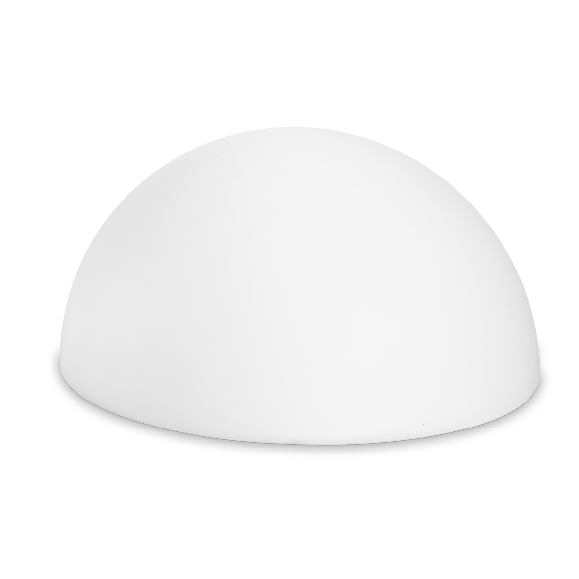 Lampada decorativa da terra per esterno (IP65), dalla forma sferica o semisferica. Corpo diffondente in polietilene con attacco E27 che consente di montare lampadina LED, per un effetto scenografico di luce diffusa. Per fissarla nel terreno ? necessario l’utilizzo dell’apposita controcassa. Disponibile in tre diametri nella versione sferica e in due misure nella versione semisferica.