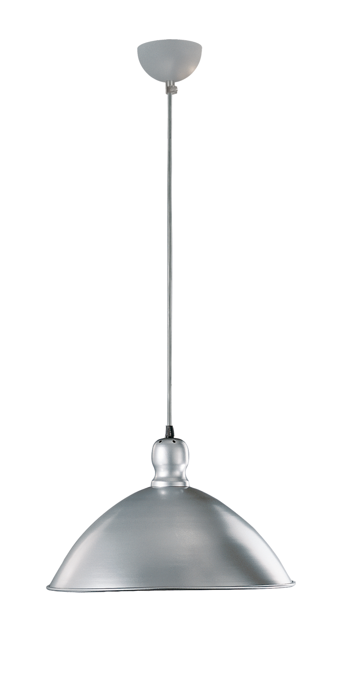 Lampada a sospensione in stile industriale in alluminio. Due diverse forme con diverse dimensioni e proporzioni. Cablata con attacco E27 che consente di montare lampadina LED.