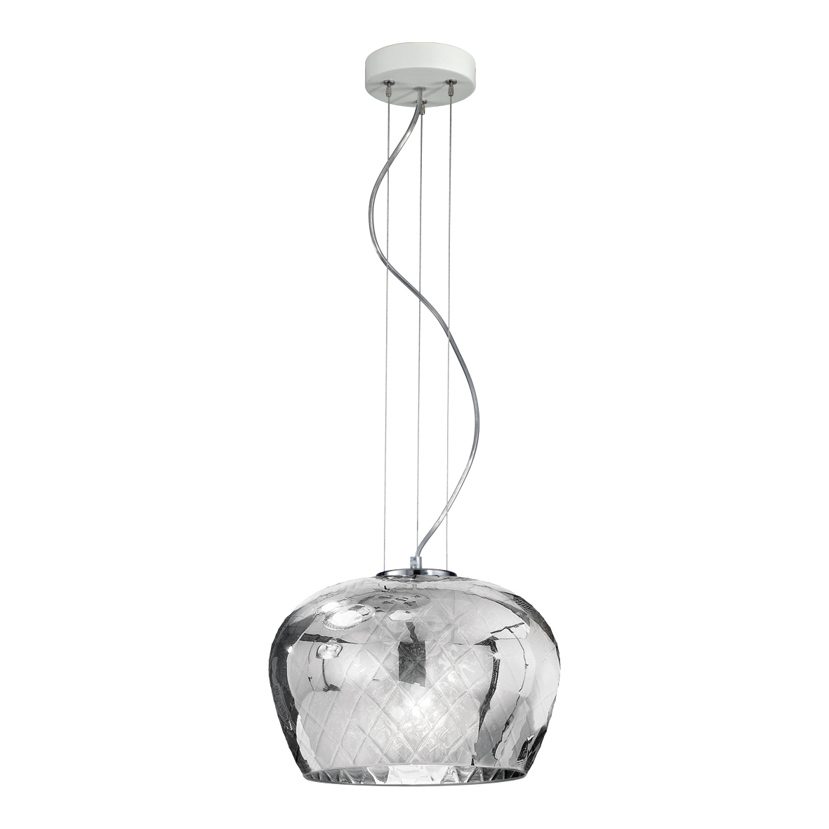 Lampada a sospensione in vetro soffiato con lavorazione baloton. Versione con vetro trasparente in finitura ambra e grigio fum?