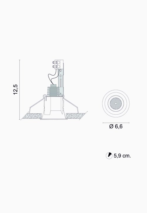 L’installazione prevede il fissaggio in controsoffiti di cartongesso. La sorgente è arretrata nel corpo garantendo un miglior controllo dell’abbagliamento diretto.